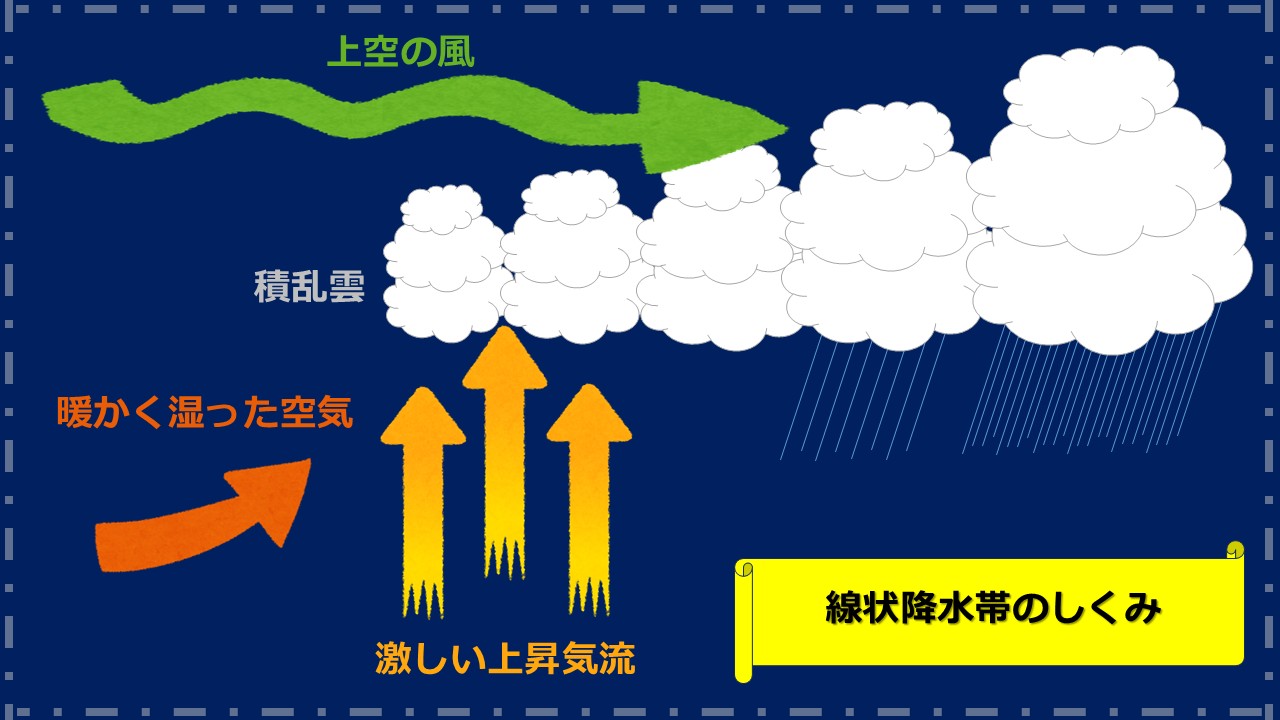 幅約20〜50㎞の雨雲が同じ場所で、数時間にわたって大雨を降らすというもの。